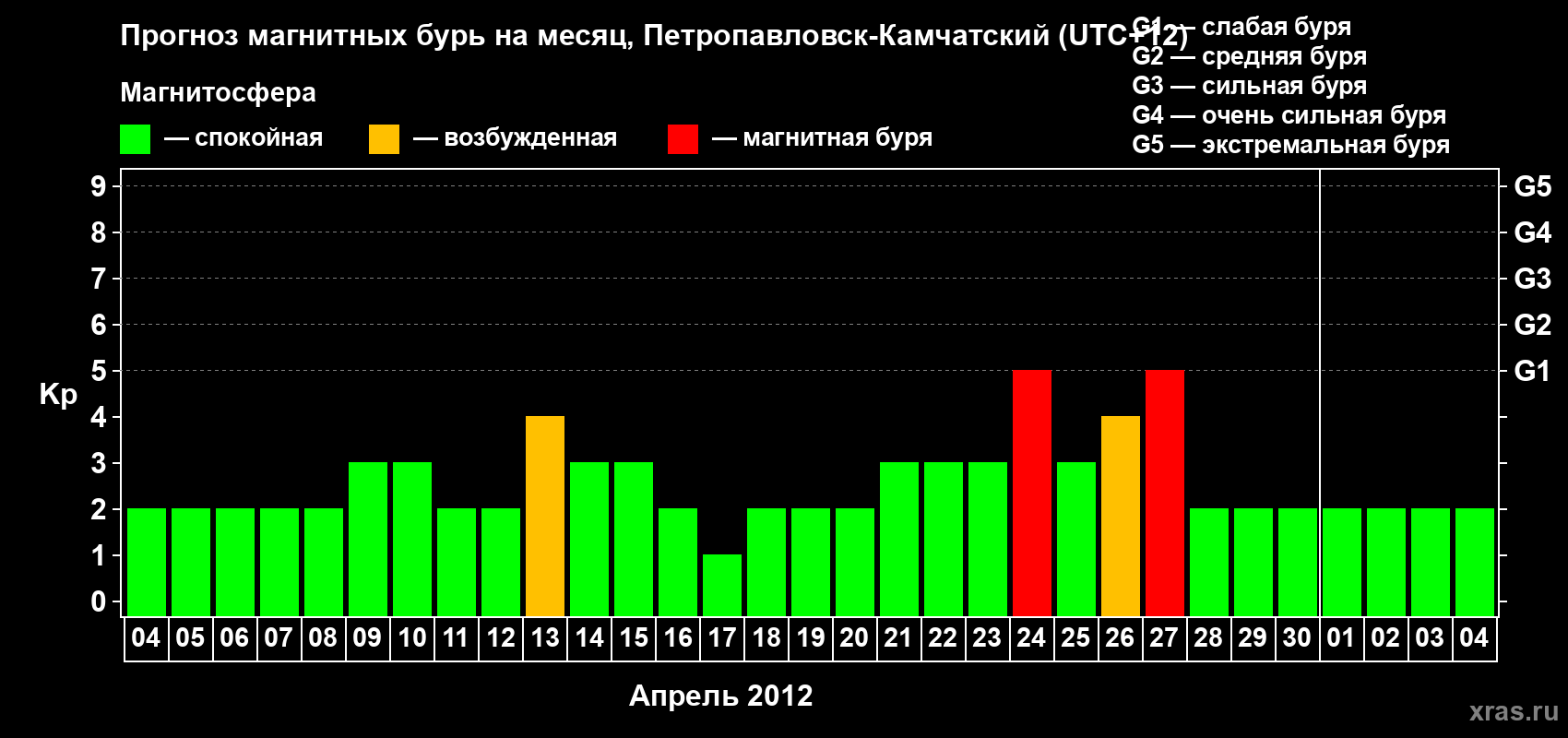 Прогноз магнитных бурь Петропавловске-Камчатском — 4 апреля 2012 года