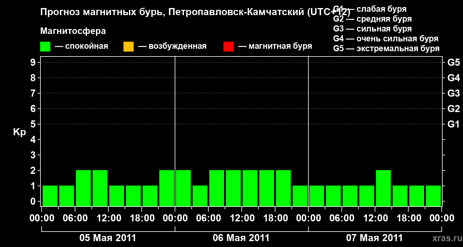 Прогноз магнитных бурь Петропавловске-Камчатском — 5 мая 2011 года