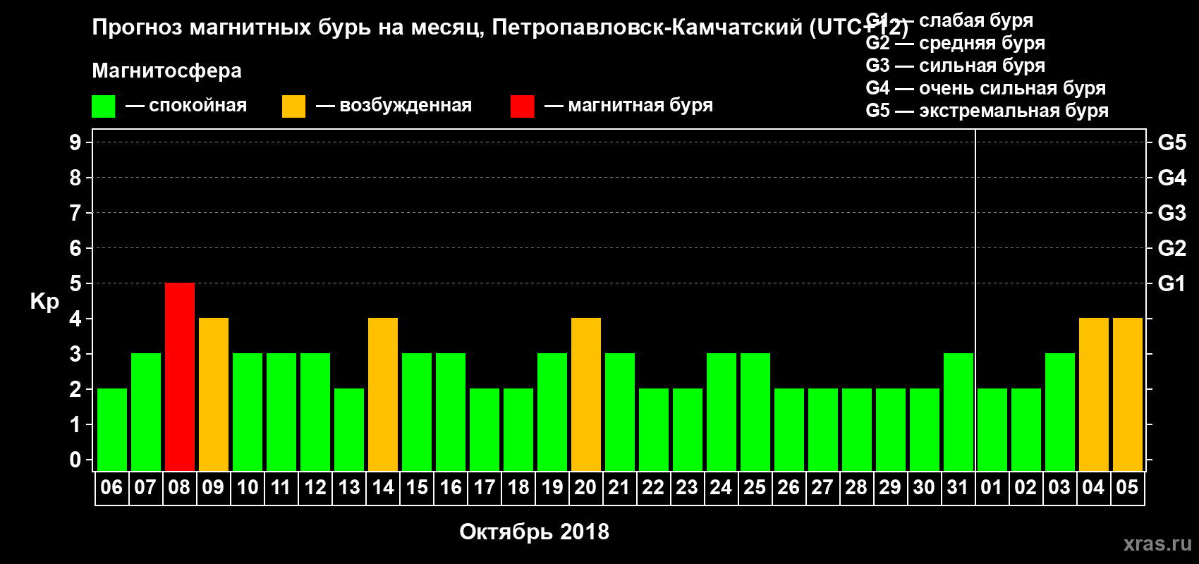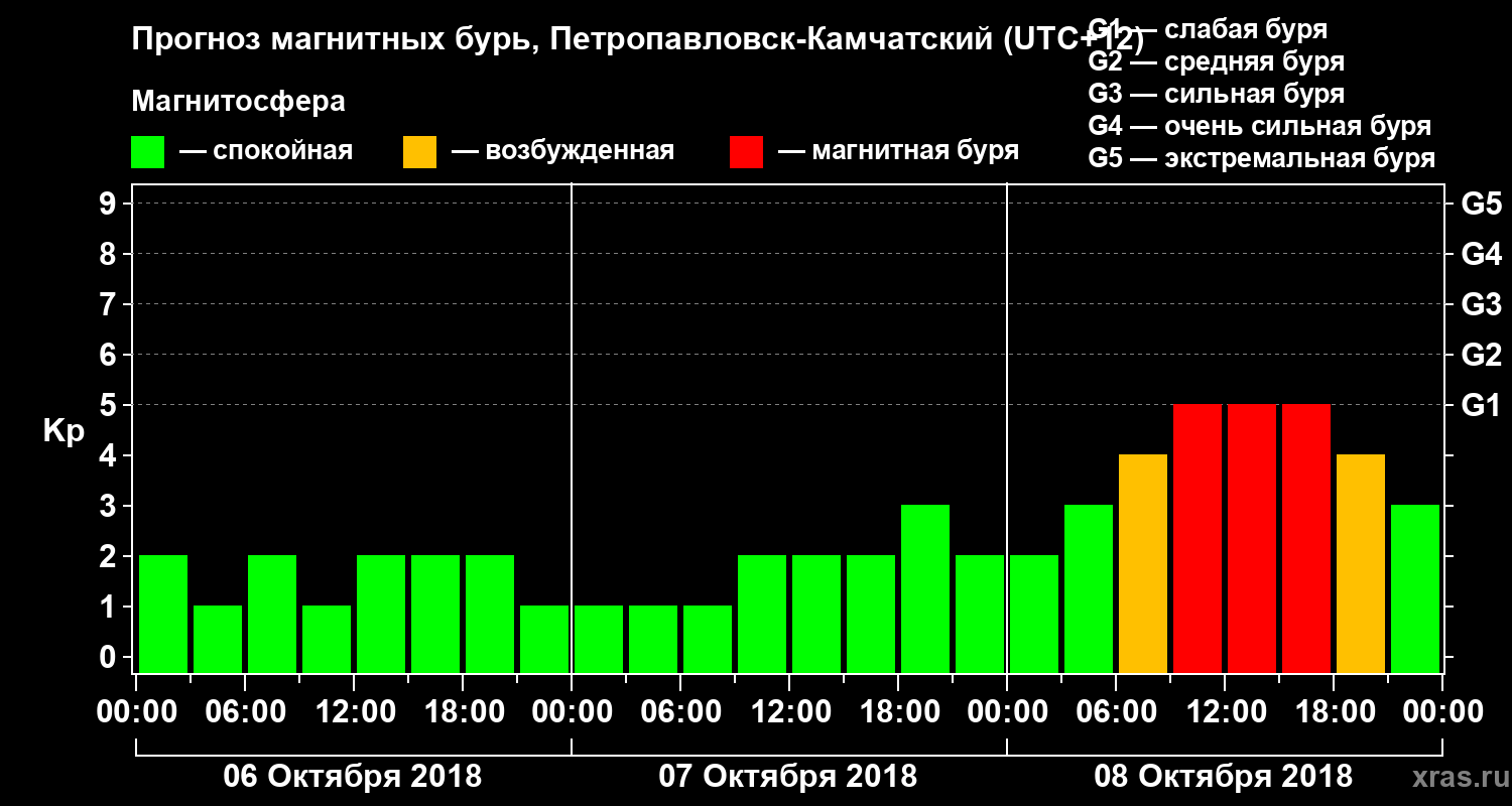 Прогноз магнитных бурь Петропавловске-Камчатском — 6 октября 2018 года