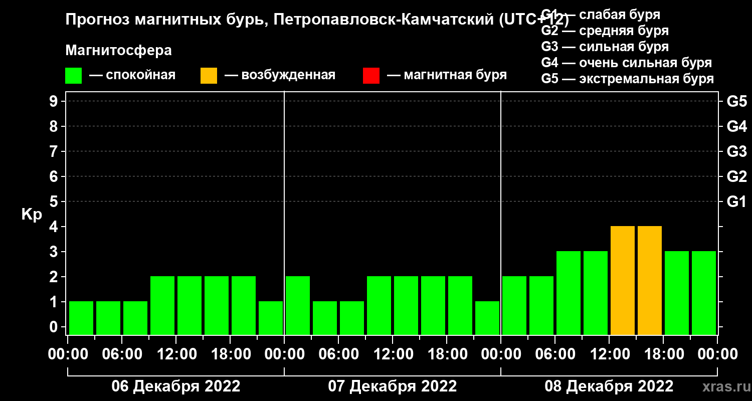 Прогноз магнитных бурь Петропавловске-Камчатском на 6 декабря 2022 года