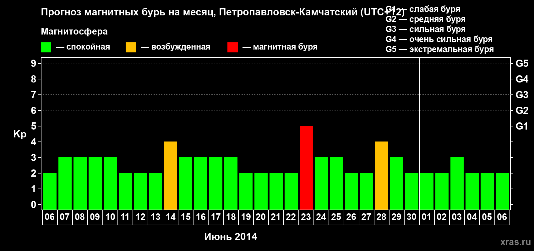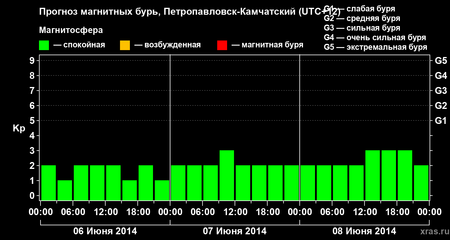 Прогноз магнитных бурь Петропавловске-Камчатском — 6 июня 2014 года