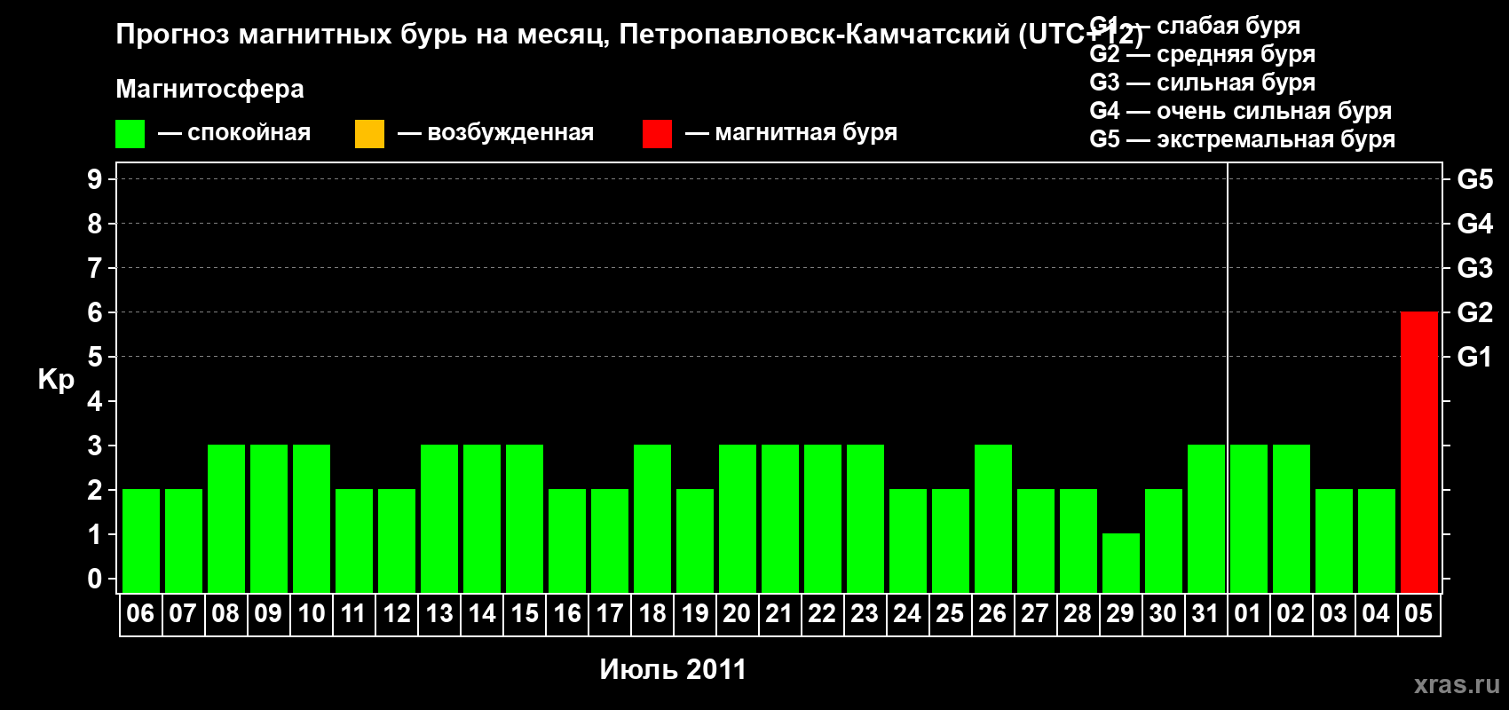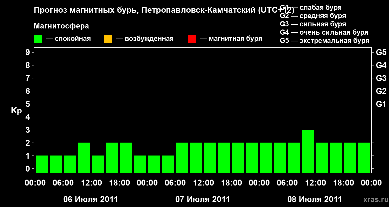 Прогноз магнитных бурь Петропавловске-Камчатском — 6 июля 2011 года