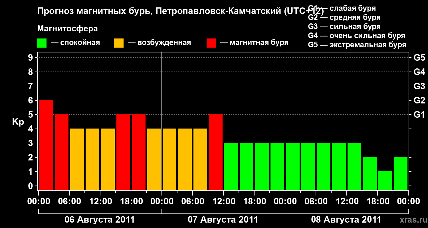 Прогноз магнитных бурь Петропавловске-Камчатском — 6 августа 2011 года