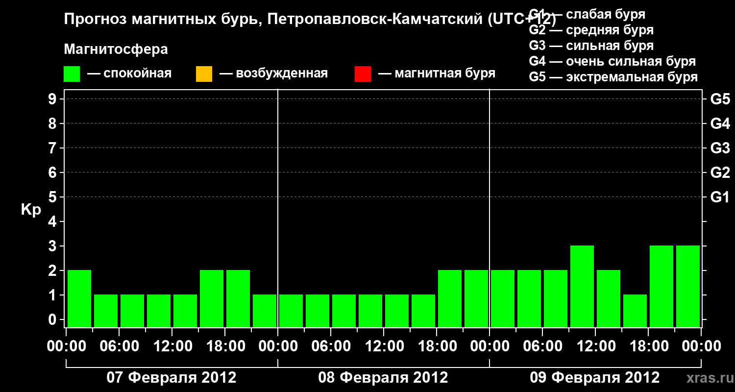 Прогноз магнитных бурь Петропавловске-Камчатском — 7 февраля 2012 года