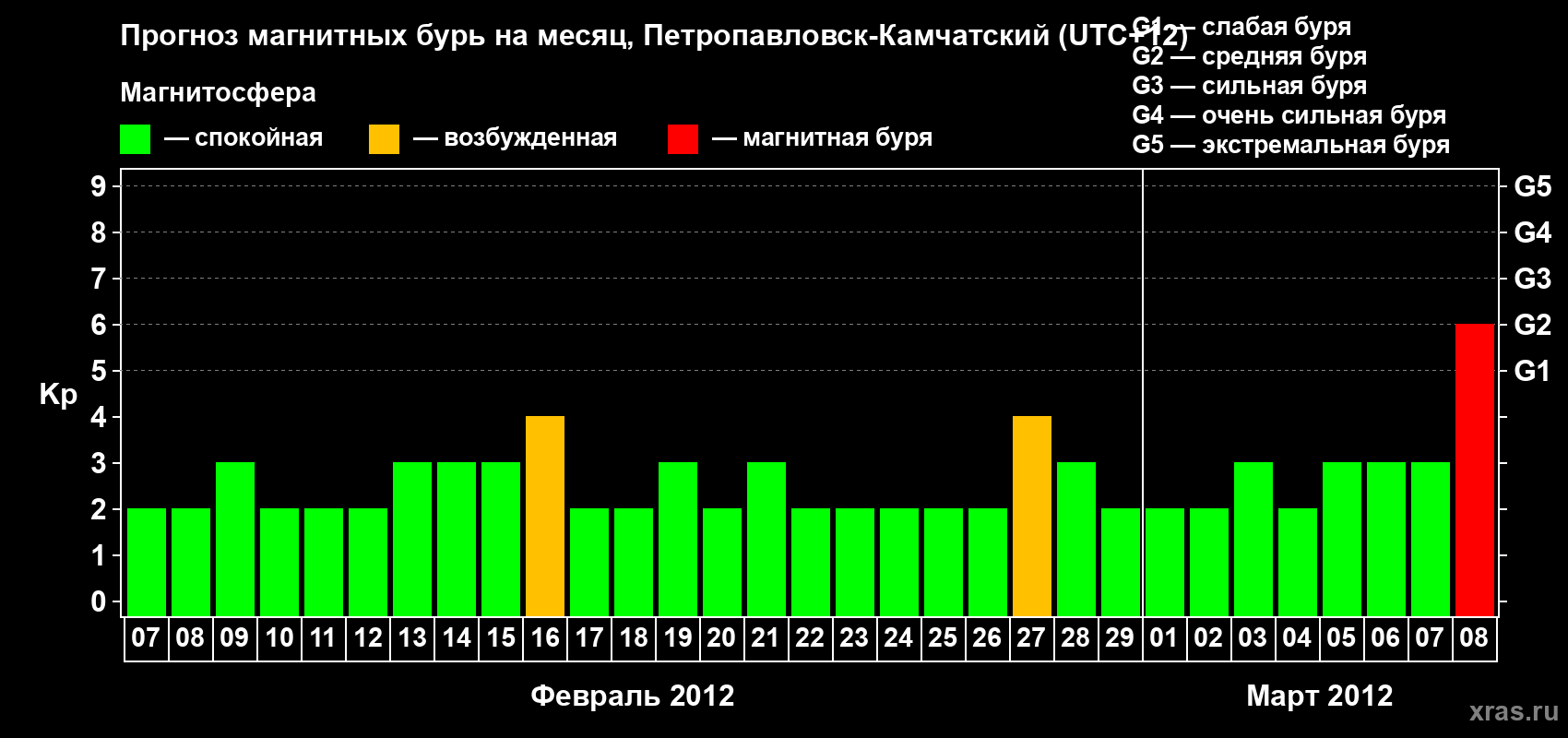 Прогноз магнитных бурь Петропавловске-Камчатском на 7 февраля 2012 года