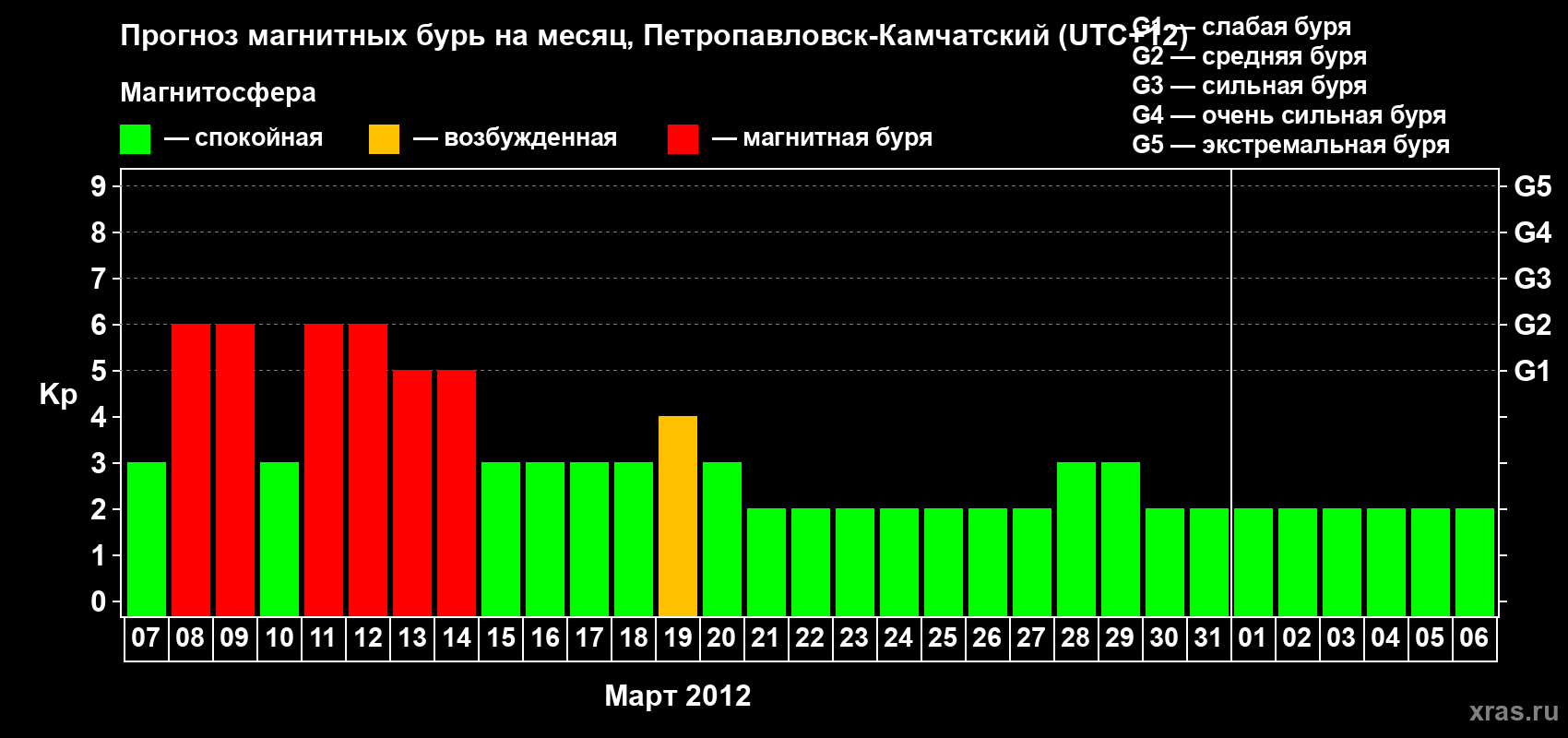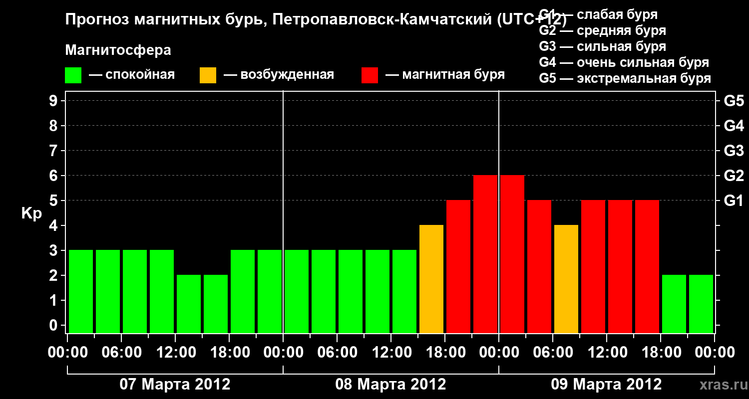Прогноз магнитных бурь Петропавловске-Камчатском — 7 марта 2012 года