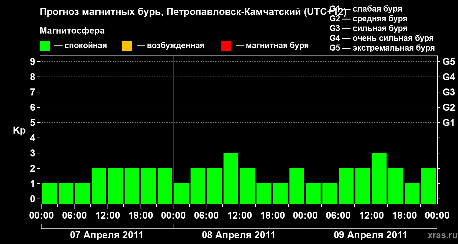 Прогноз магнитных бурь Петропавловске-Камчатском — 7 апреля 2011 года