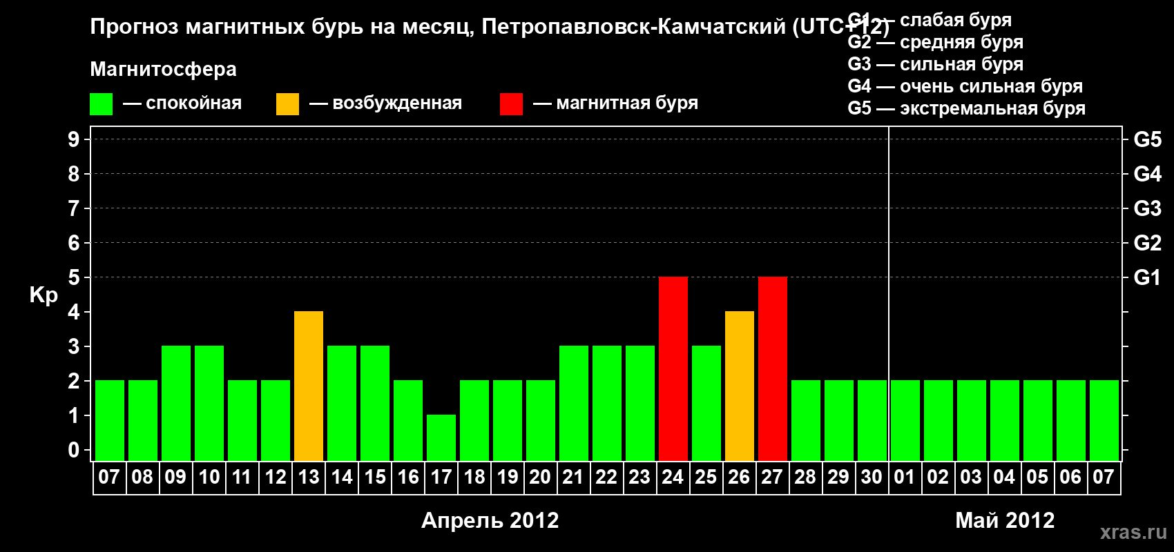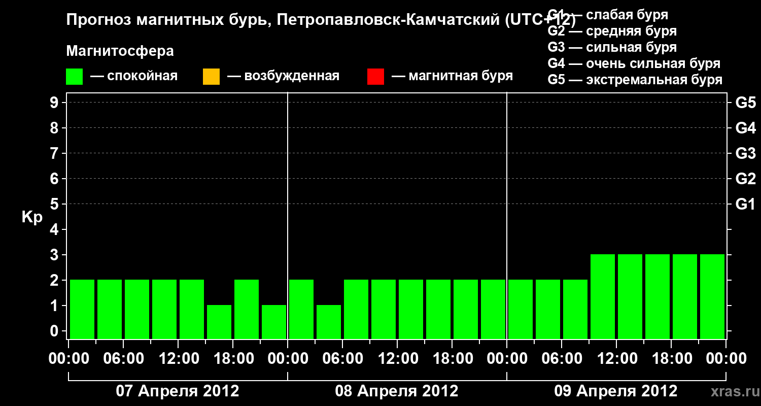 Прогноз магнитных бурь Петропавловске-Камчатском — 7 апреля 2012 года