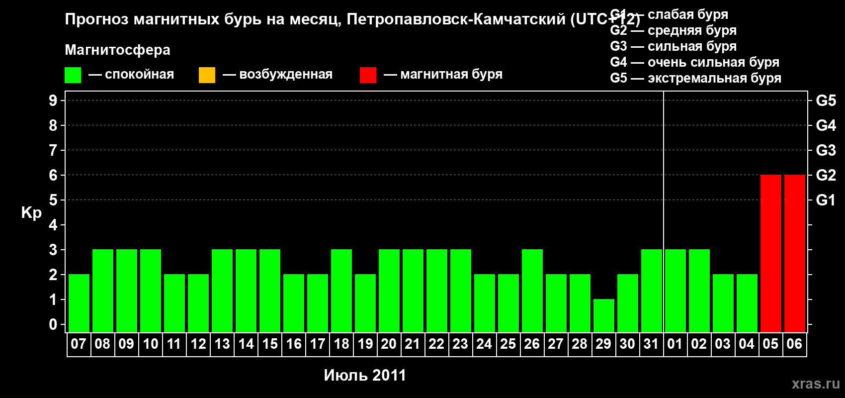 Прогноз магнитных бурь Петропавловске-Камчатском — 7 июля 2011 года