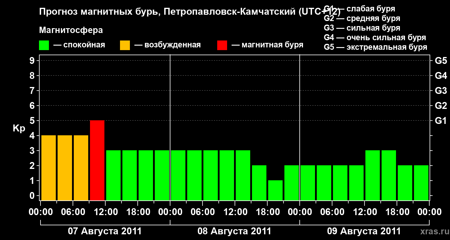 Прогноз магнитных бурь Петропавловске-Камчатском — 7 августа 2011 года