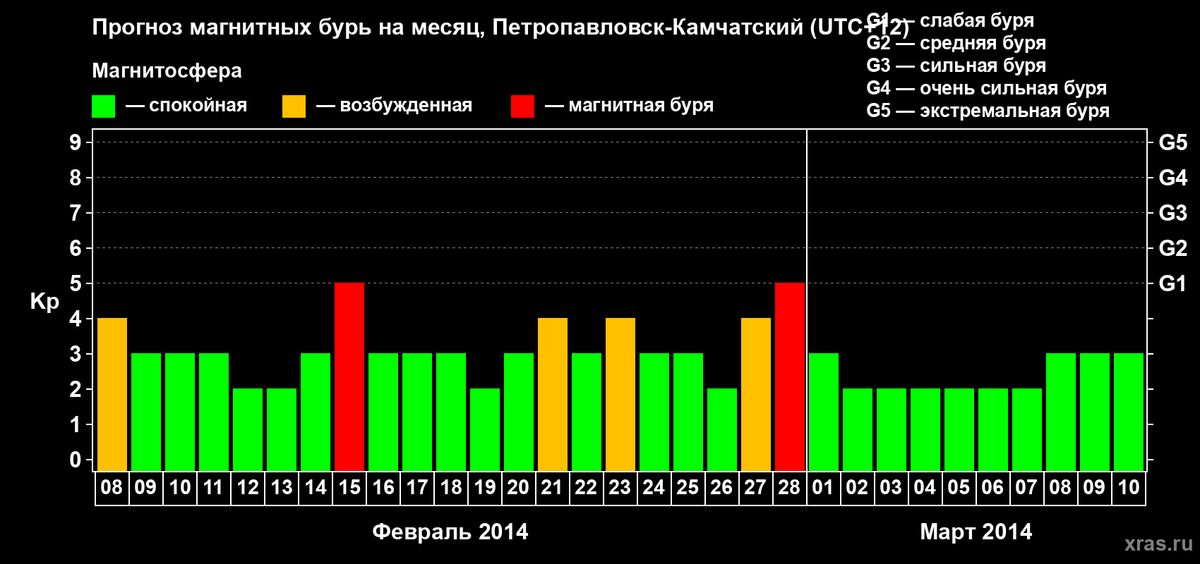 Прогноз магнитных бурь Петропавловске-Камчатском — 8 февраля 2014 года
