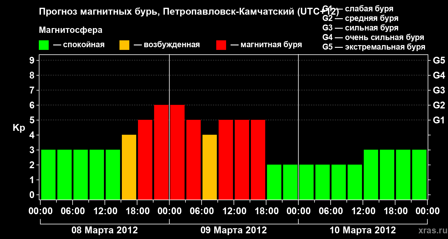 Прогноз магнитных бурь Петропавловске-Камчатском — 8 марта 2012 года