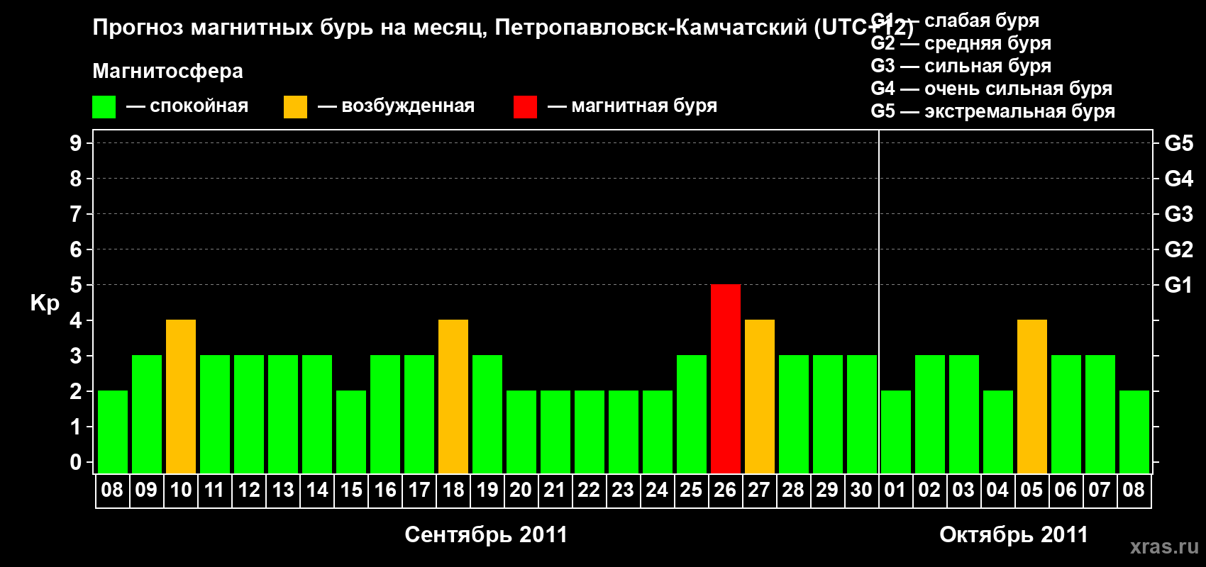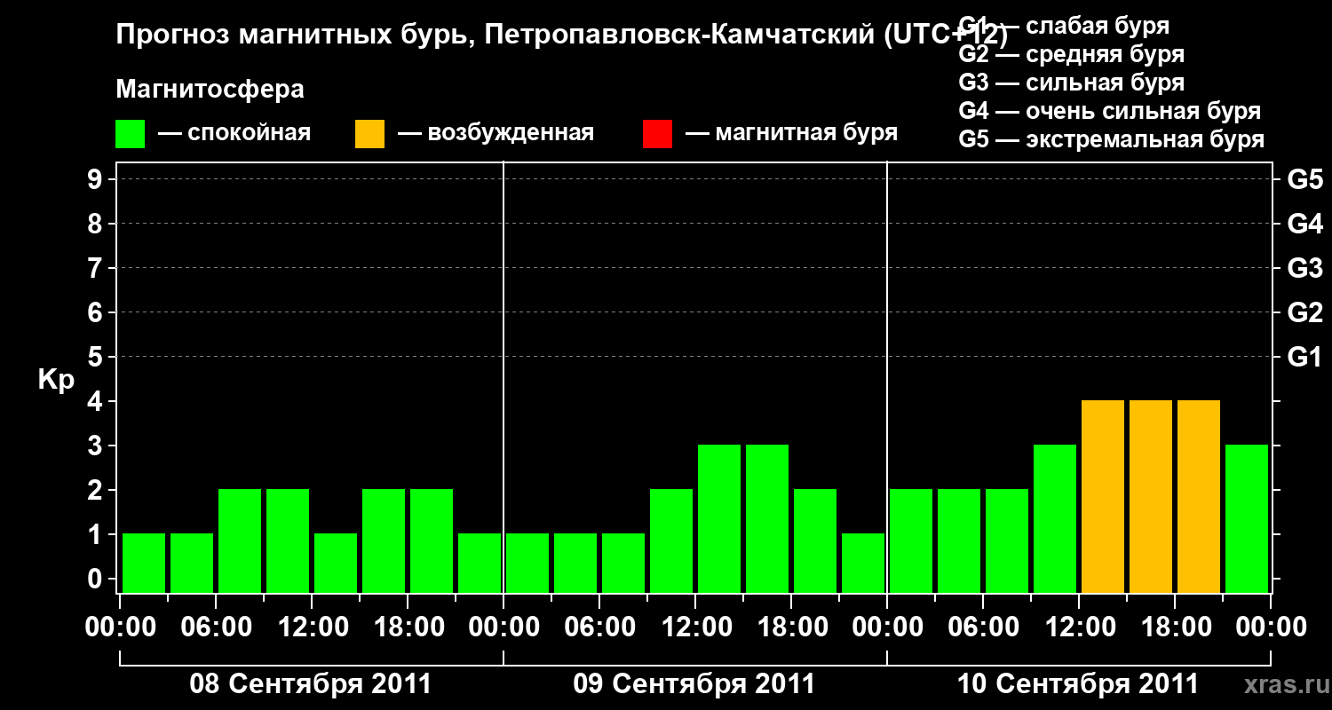 Прогноз магнитных бурь Петропавловске-Камчатском — 8 сентября 2011 года