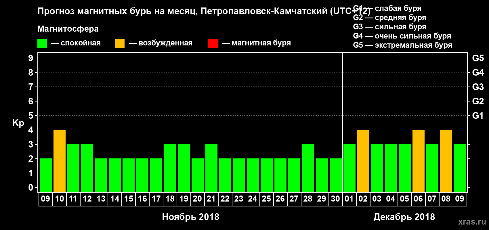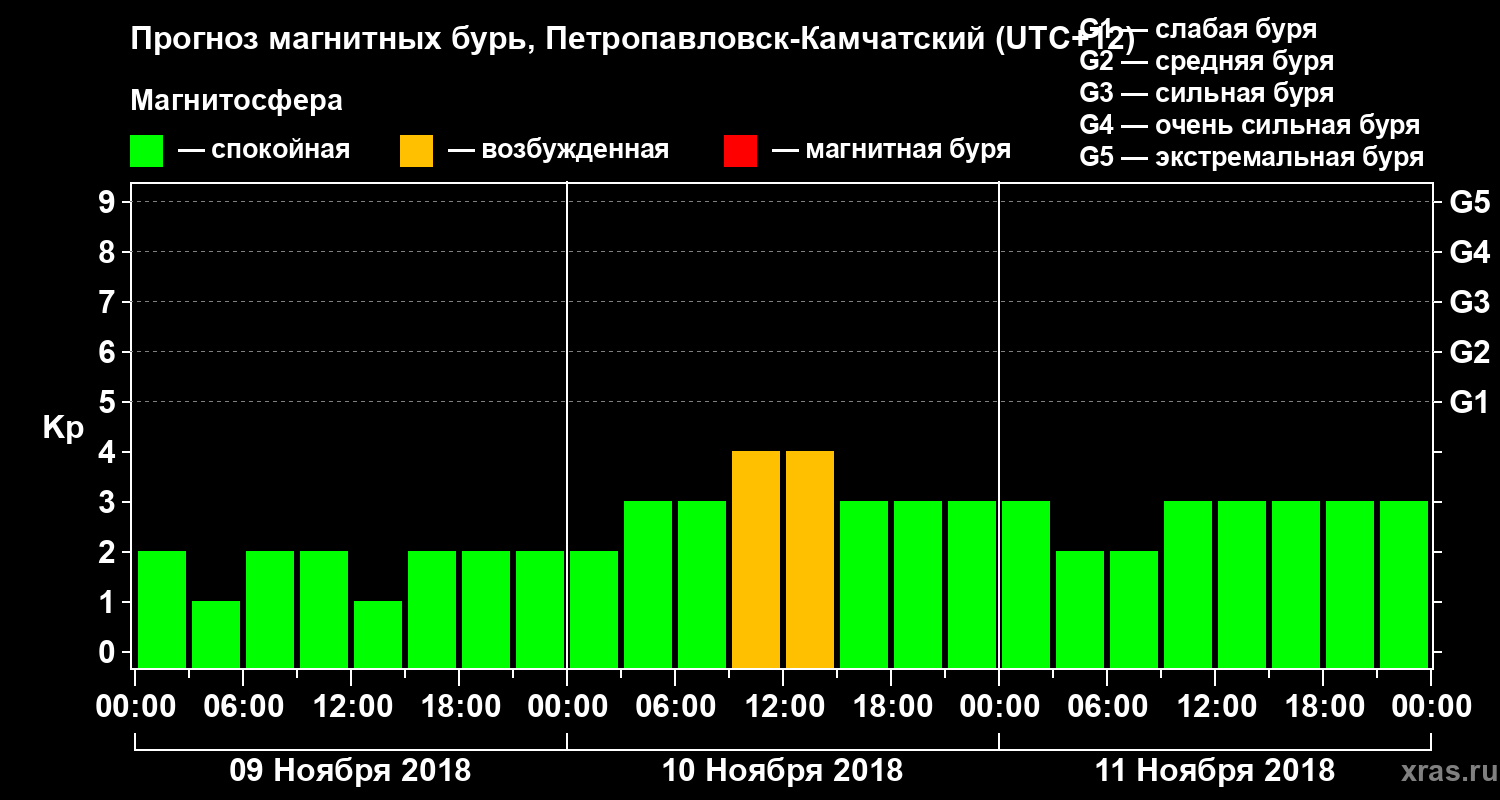 Прогноз магнитных бурь Петропавловске-Камчатском на 9 ноября 2018 года