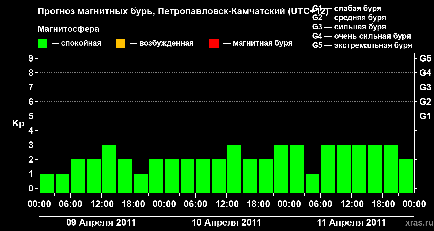 Прогноз магнитных бурь Петропавловске-Камчатском — 9 апреля 2011 года