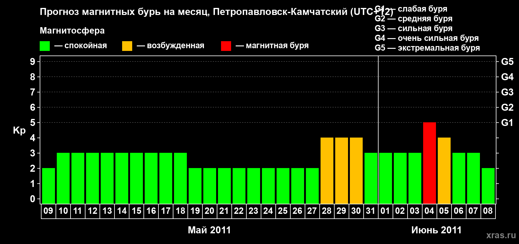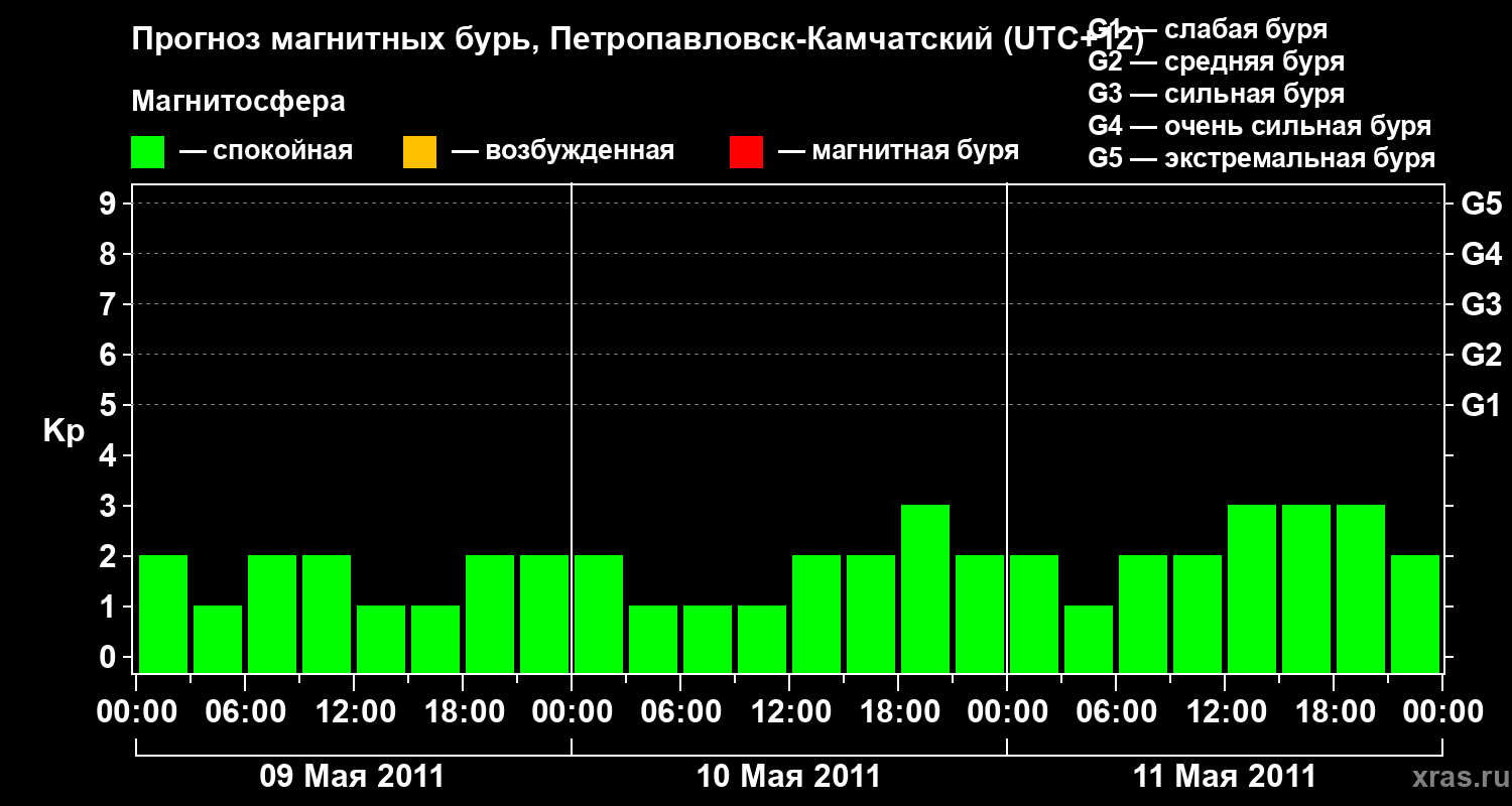 Прогноз магнитных бурь Петропавловске-Камчатском — 9 мая 2011 года