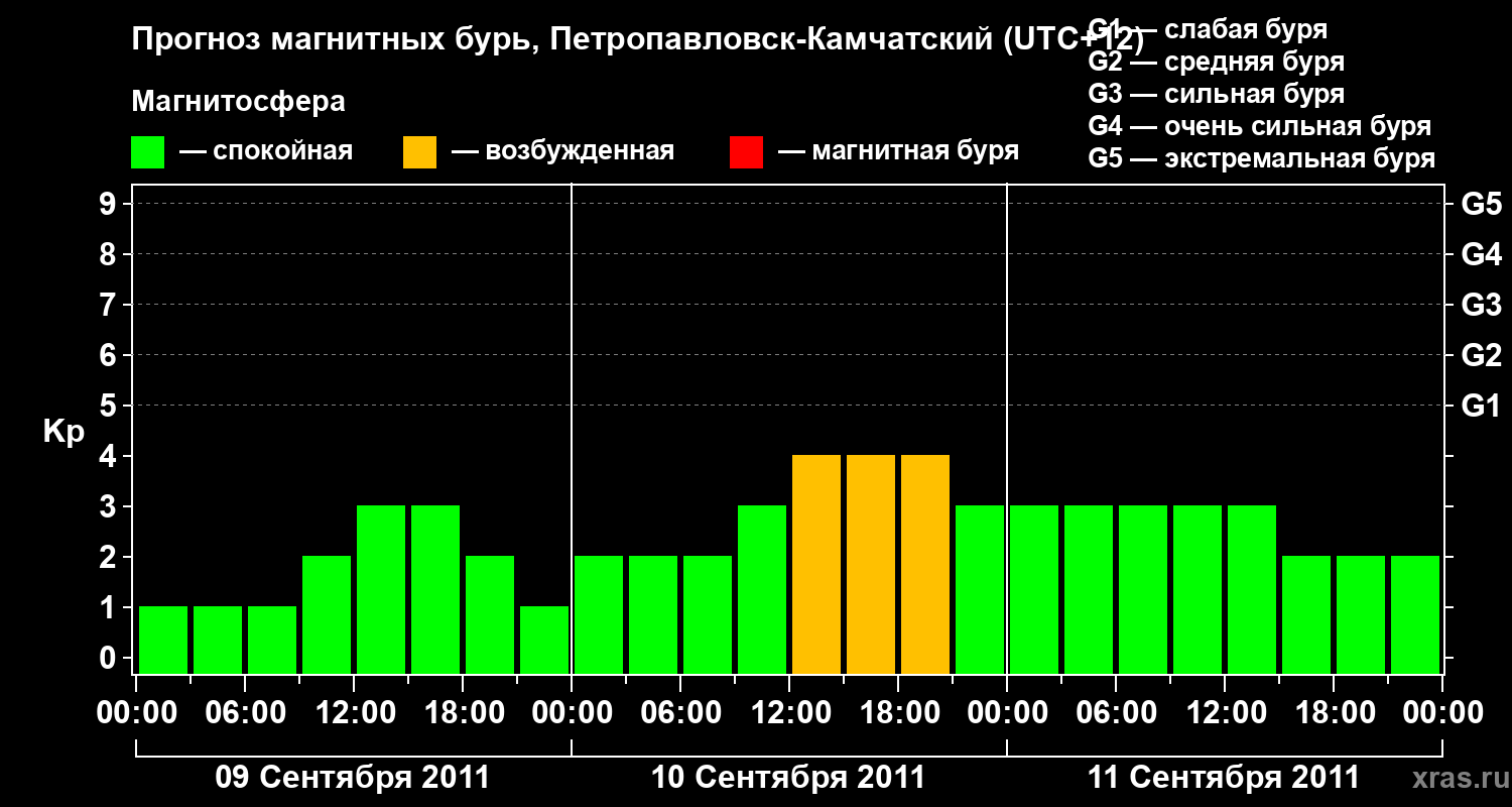 Прогноз магнитных бурь Петропавловске-Камчатском на 9 сентября 2011 года