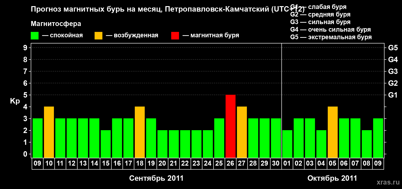 Прогноз магнитных бурь Петропавловске-Камчатском — 9 сентября 2011 года