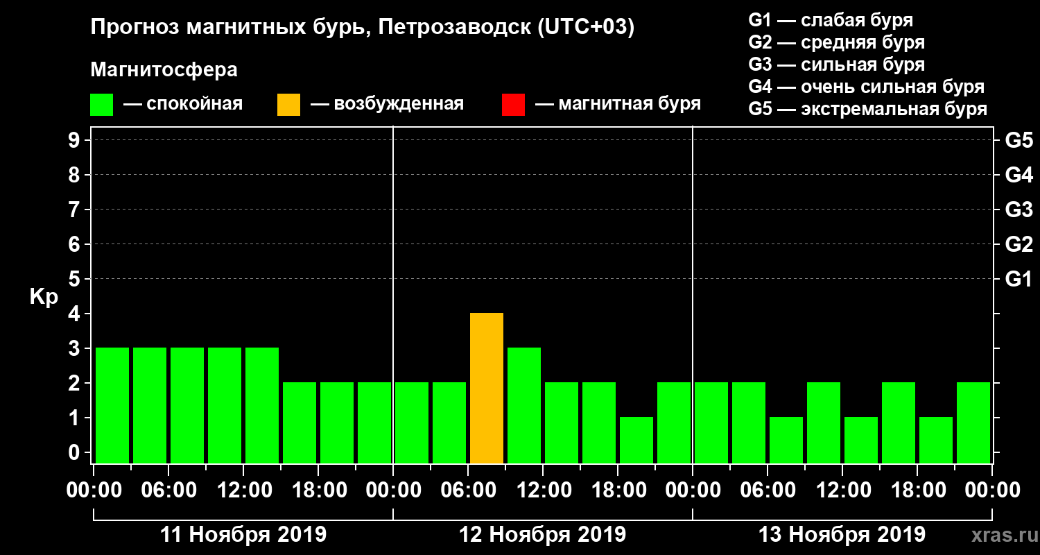 Прогноз магнитных бурь в Петрозаводске — 11 ноября 2019 года