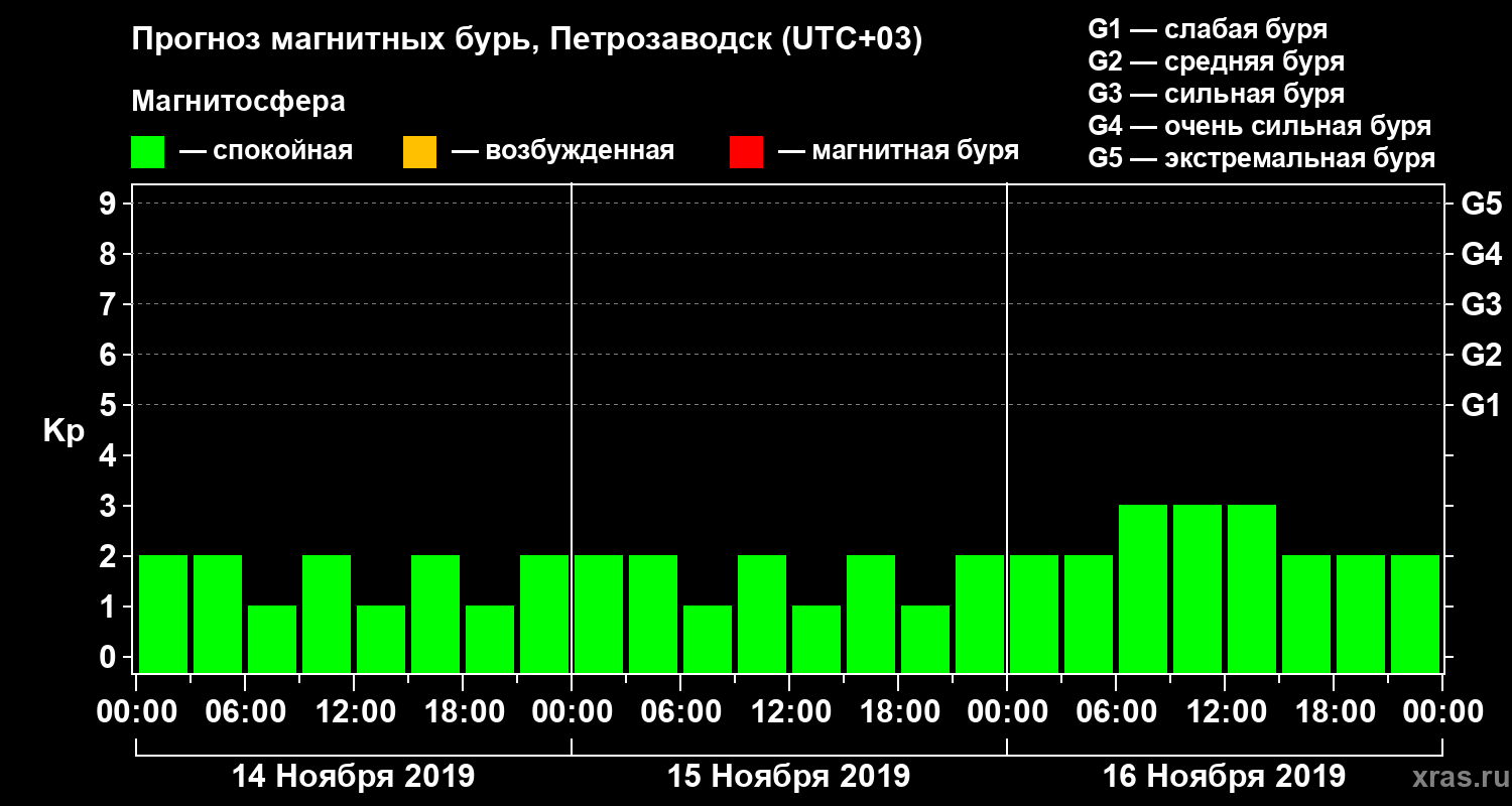 Прогноз магнитных бурь в Петрозаводске — 14 ноября 2019 года