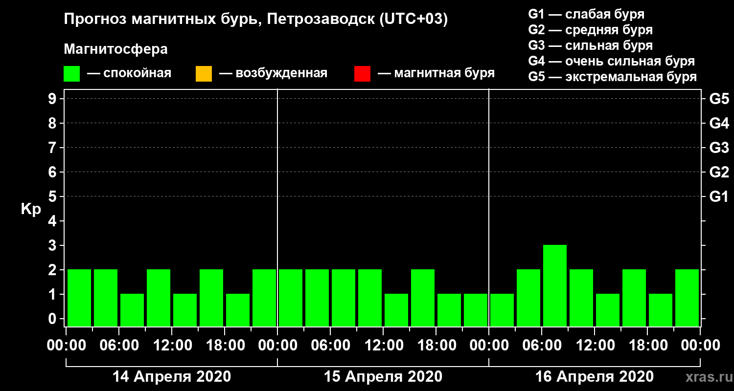 Прогноз магнитных бурь в Петрозаводске — 14 апреля 2020 года