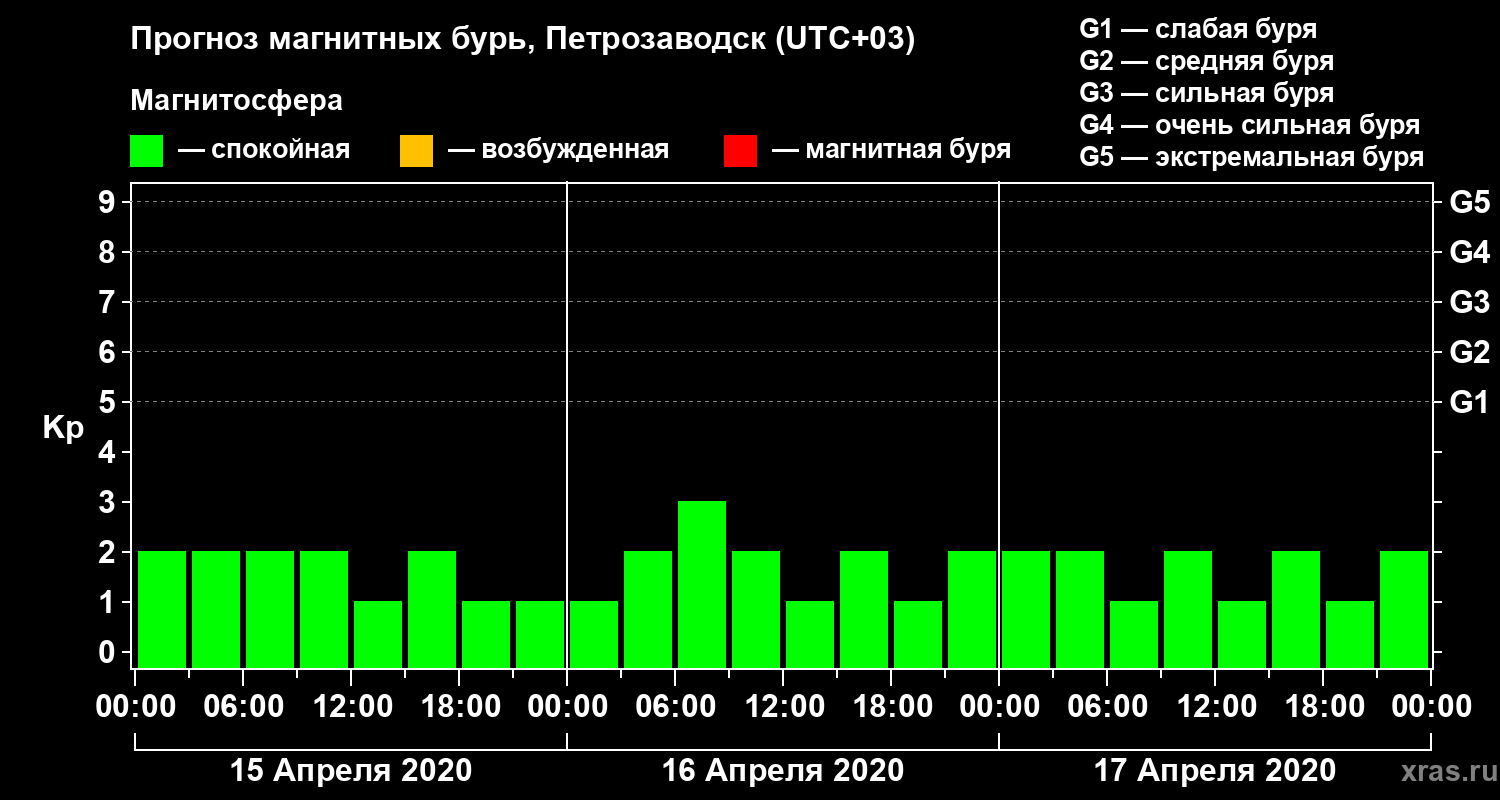 Прогноз магнитных бурь в Петрозаводске — 15 апреля 2020 года