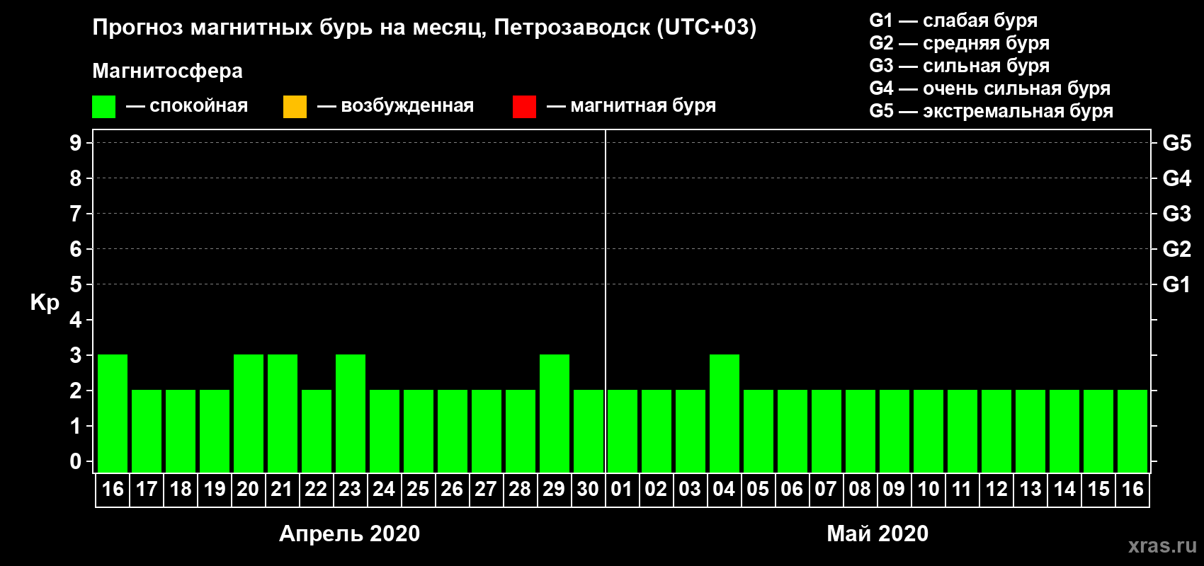 Прогноз магнитных бурь в Петрозаводске на 16 апреля 2020 года