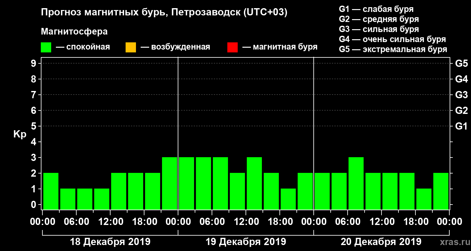 Прогноз магнитных бурь в Петрозаводске — 18 декабря 2019 года
