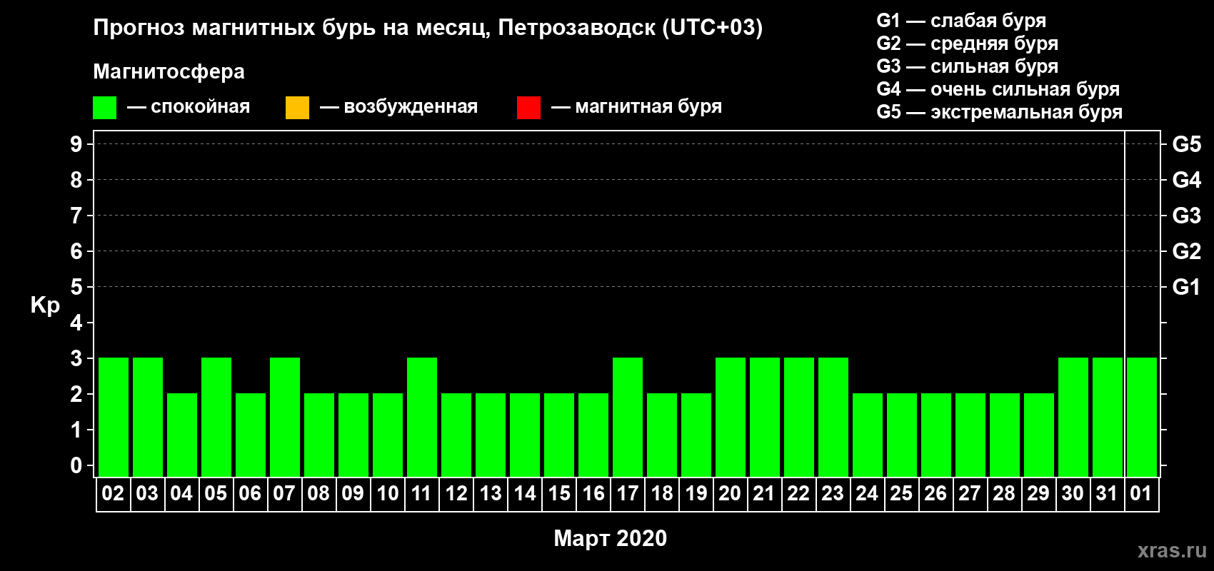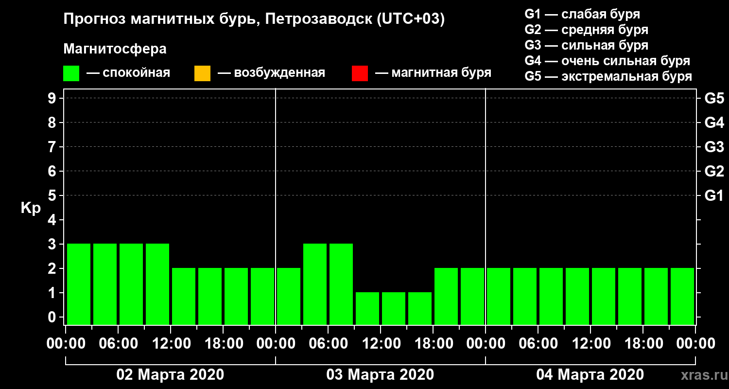 Прогноз магнитных бурь в Петрозаводске — 2 марта 2020 года