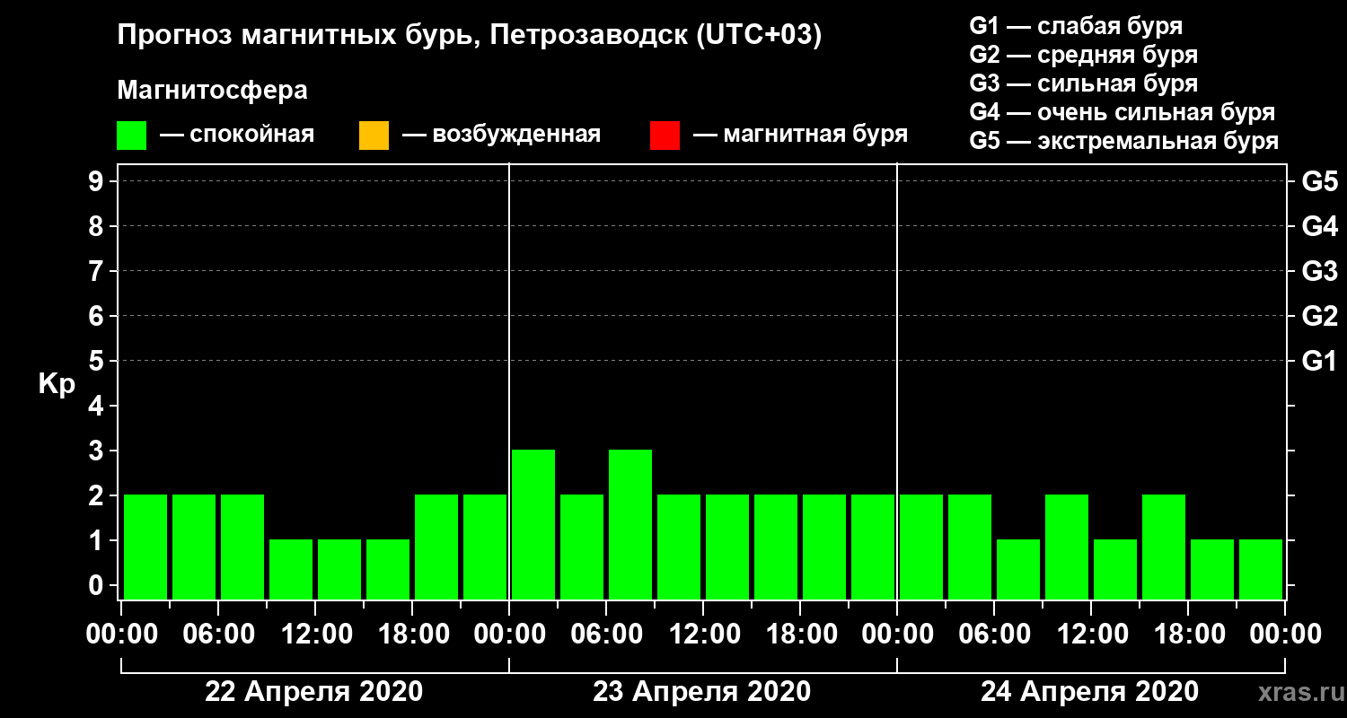 Прогноз магнитных бурь в Петрозаводске — 22 апреля 2020 года