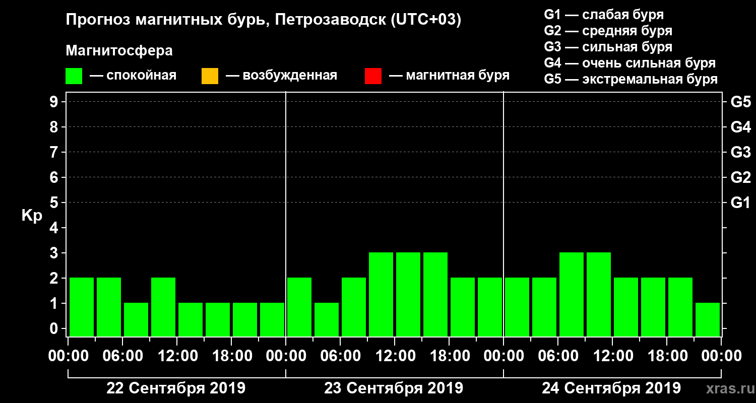 Прогноз магнитных бурь в Петрозаводске — 22 сентября 2019 года