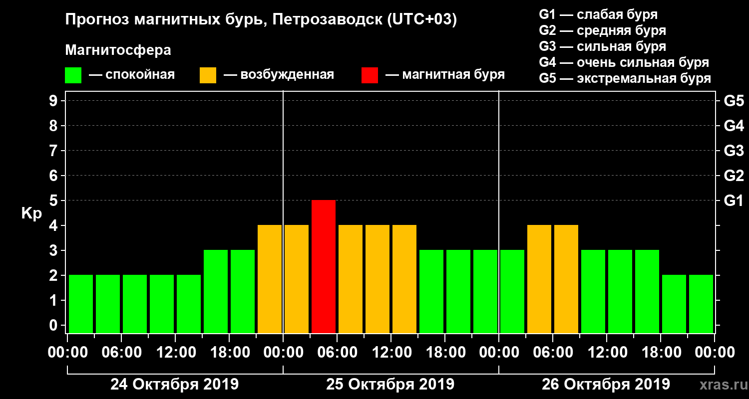Прогноз магнитных бурь в Петрозаводске — 24 октября 2019 года