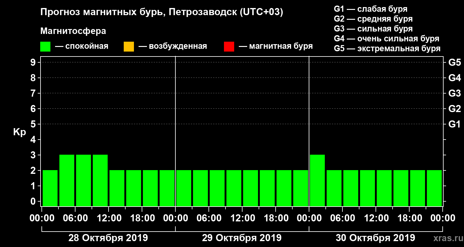 Прогноз магнитных бурь в Петрозаводске — 28 октября 2019 года