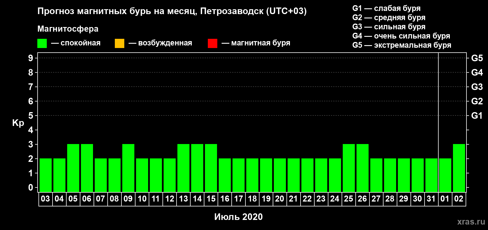 Прогноз магнитных бурь в Петрозаводске — 3 июля 2020 года