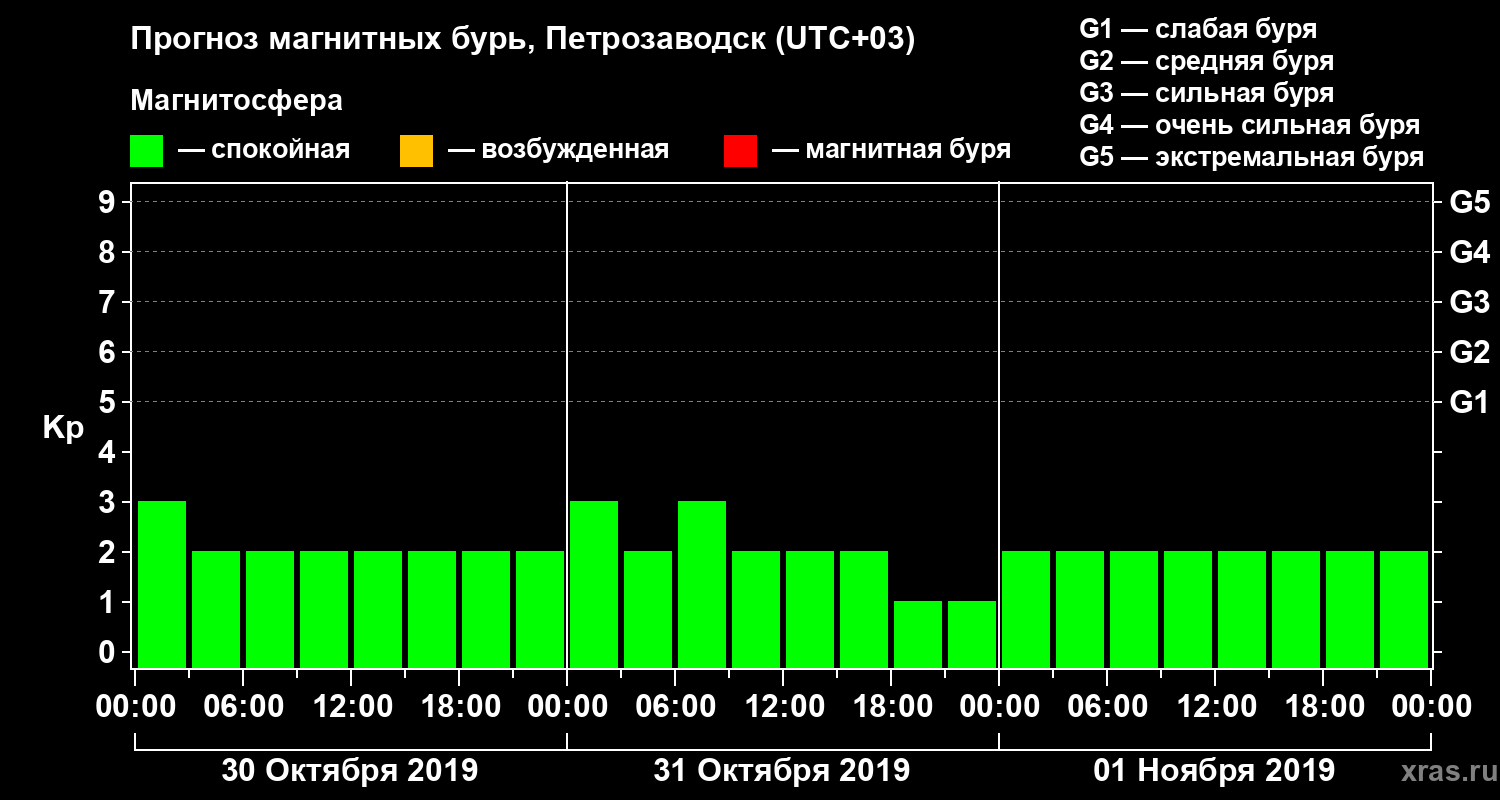 Прогноз магнитных бурь в Петрозаводске — 30 октября 2019 года