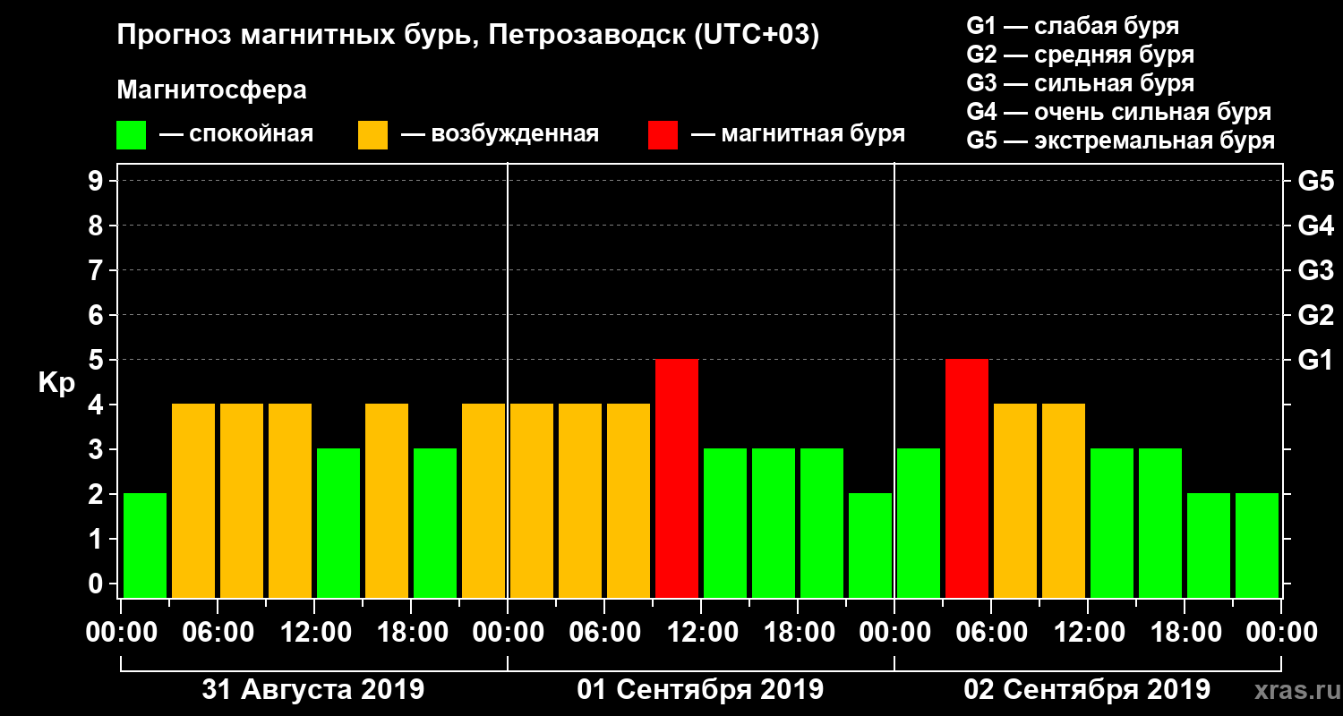 Прогноз магнитных бурь в Петрозаводске — 31 августа 2019 года