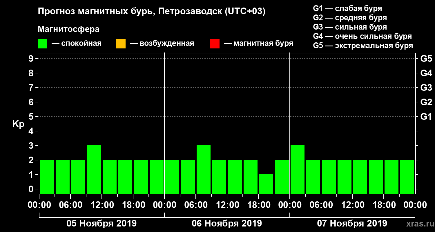 Прогноз магнитных бурь в Петрозаводске — 5 ноября 2019 года