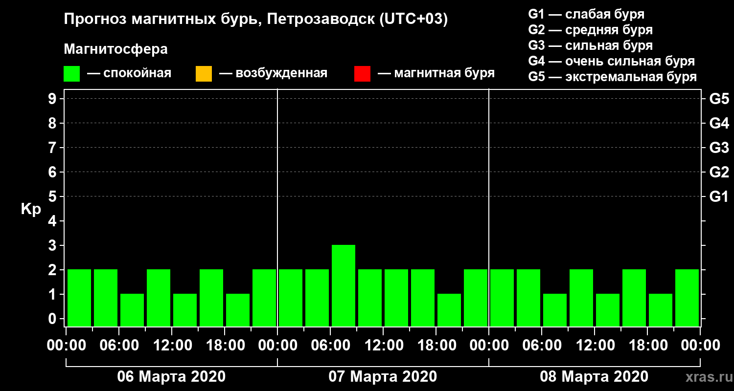 Прогноз магнитных бурь в Петрозаводске — 6 марта 2020 года