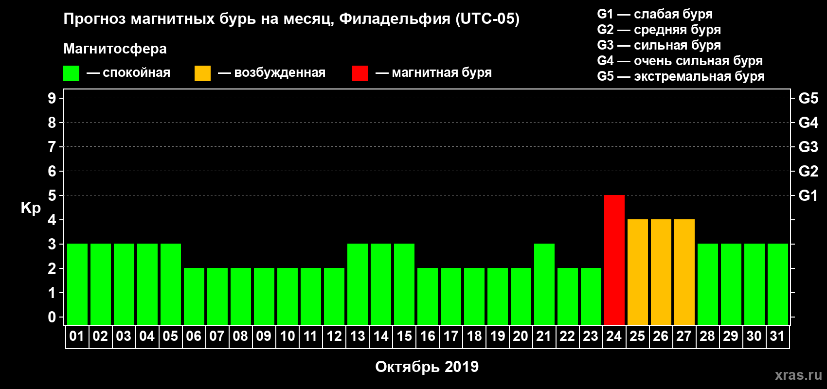 Прогноз магнитных бурь в Филадельфии — 1 октября 2019 года