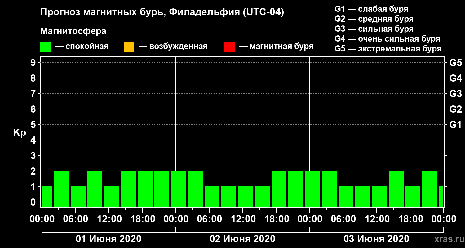 Прогноз магнитных бурь в Филадельфии — 1 июня 2020 года