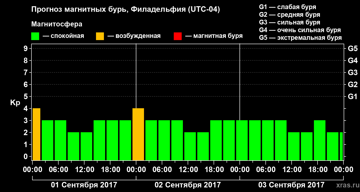 Прогноз магнитных бурь в Филадельфии — 1 сентября 2017 года
