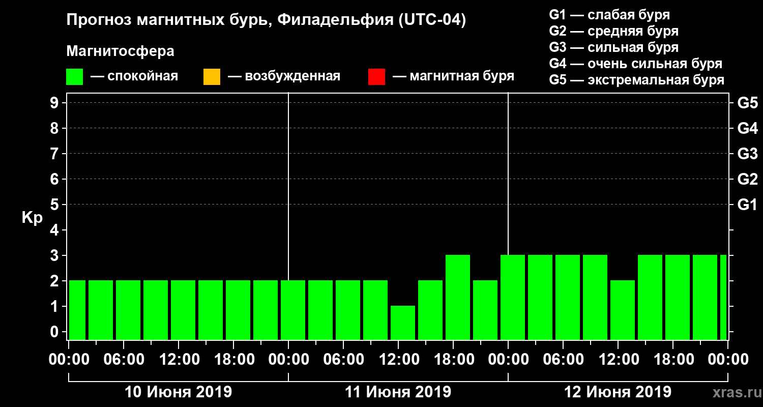 Прогноз магнитных бурь в Филадельфии — 10 июня 2019 года