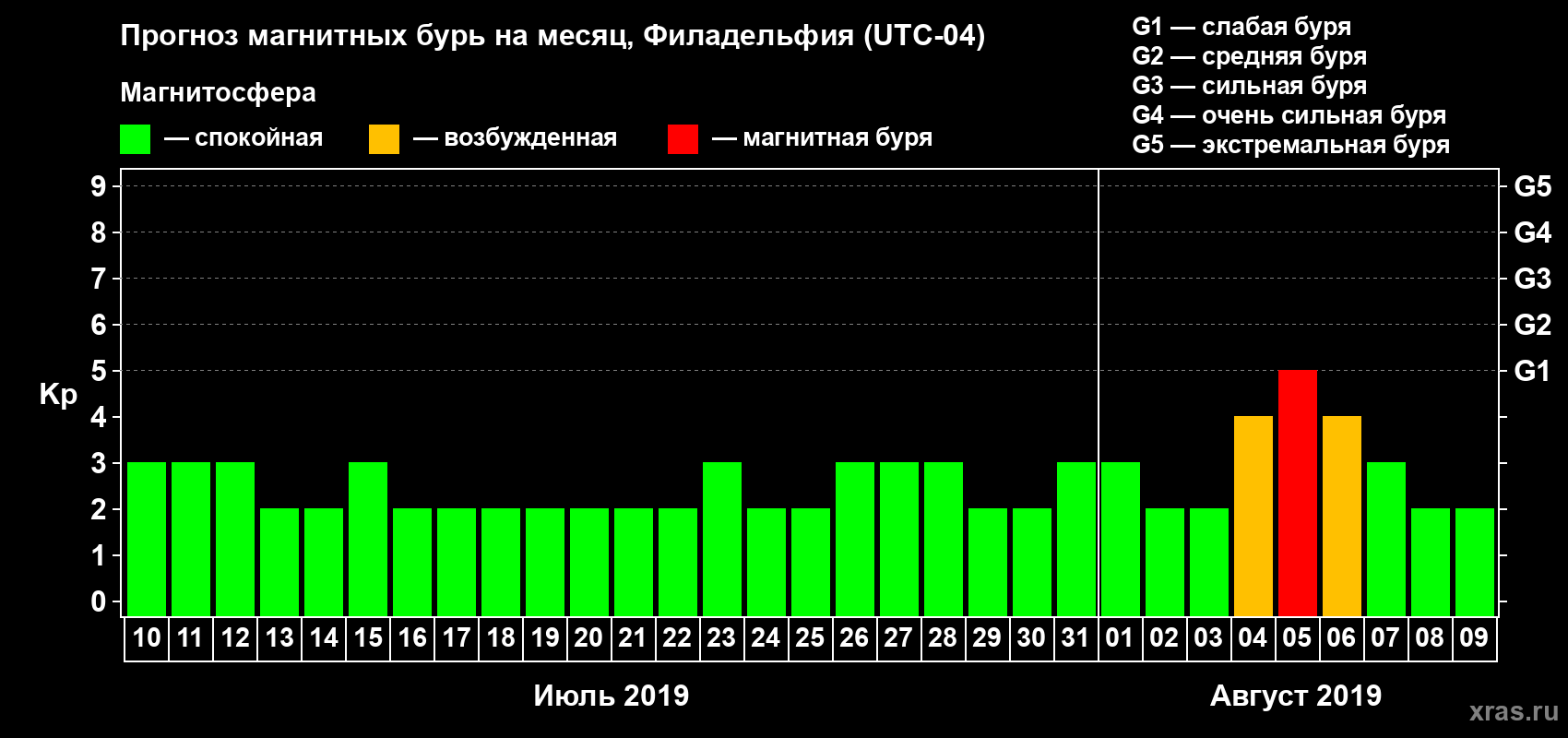 Прогноз магнитных бурь в Филадельфии — 10 июля 2019 года