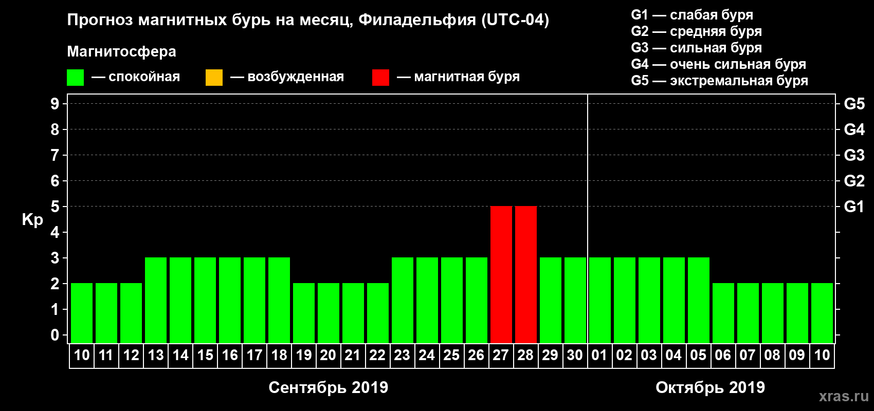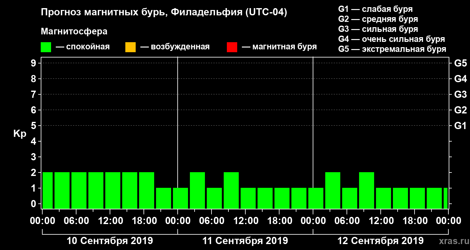 Прогноз магнитных бурь в Филадельфии — 10 сентября 2019 года