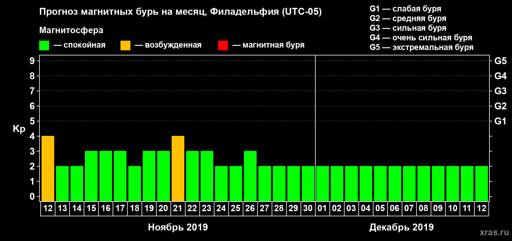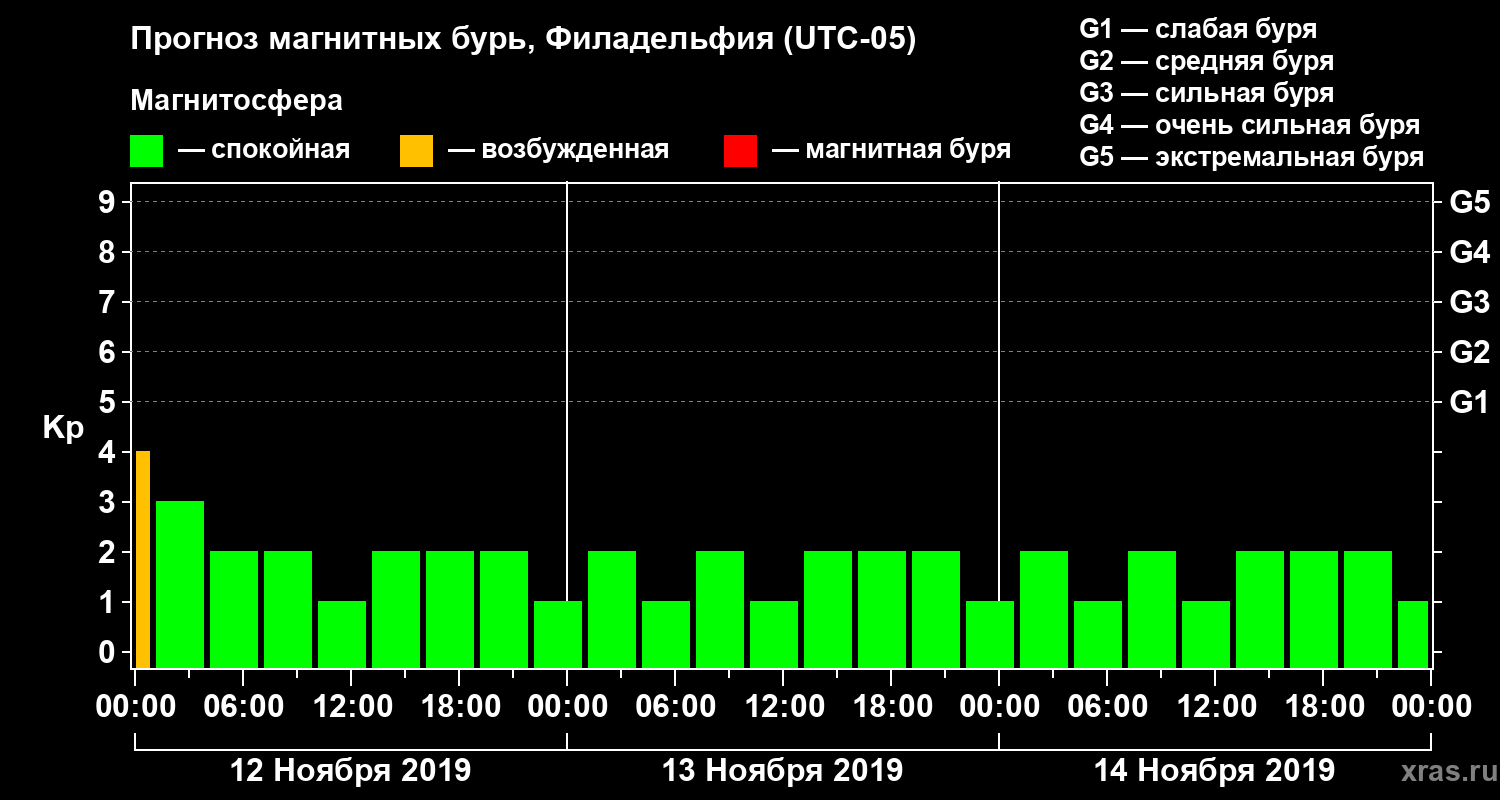 Прогноз магнитных бурь в Филадельфии — 12 ноября 2019 года