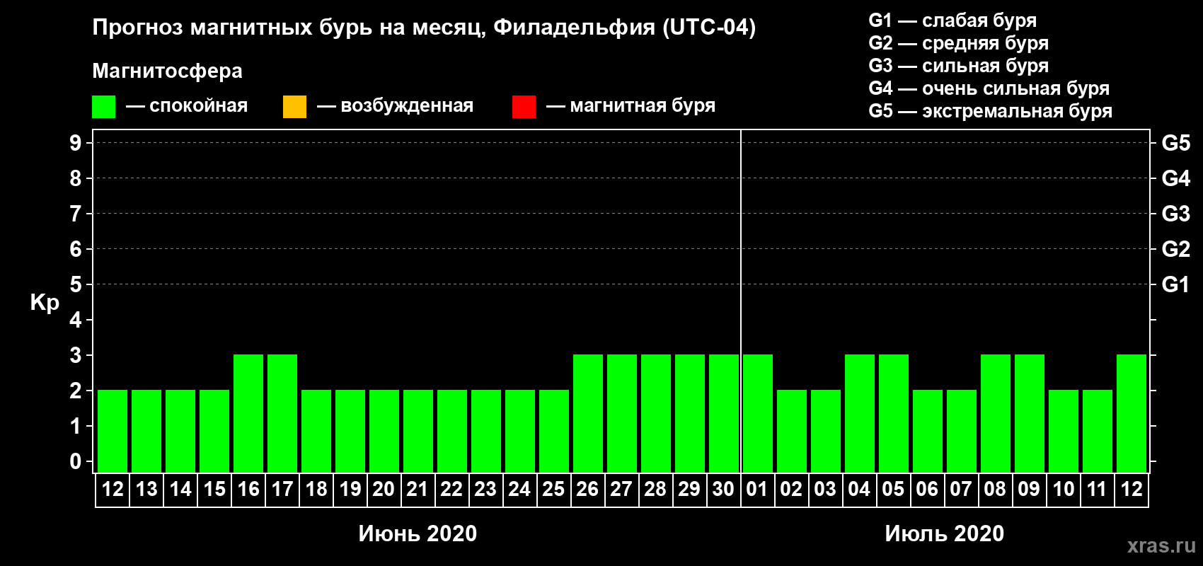 Прогноз магнитных бурь в Филадельфии — 12 июня 2020 года