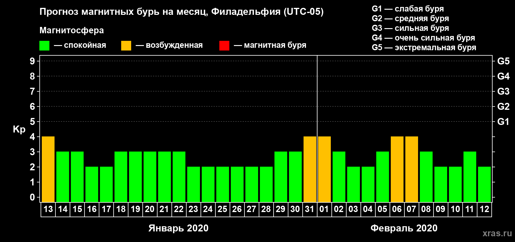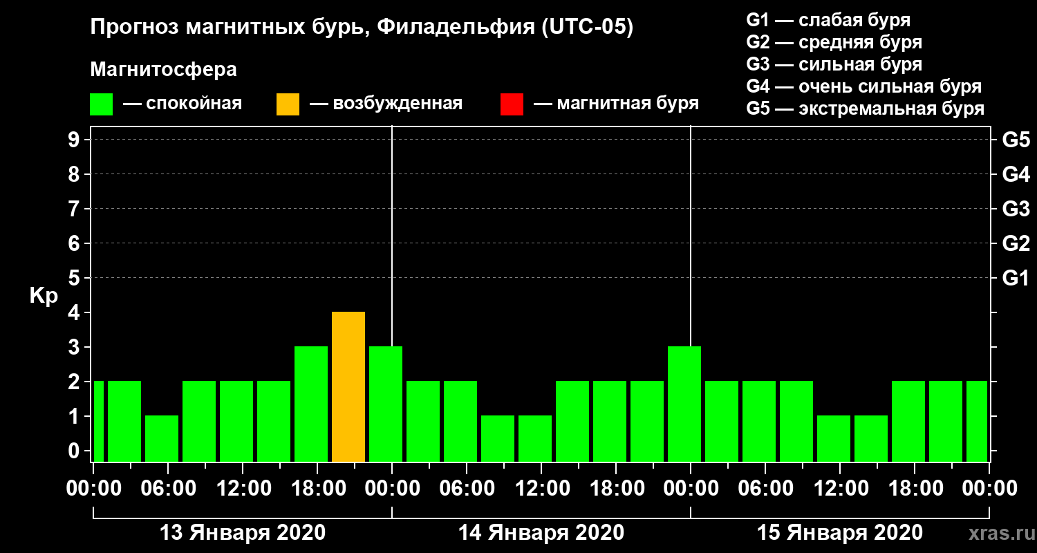 Прогноз магнитных бурь в Филадельфии — 13 января 2020 года