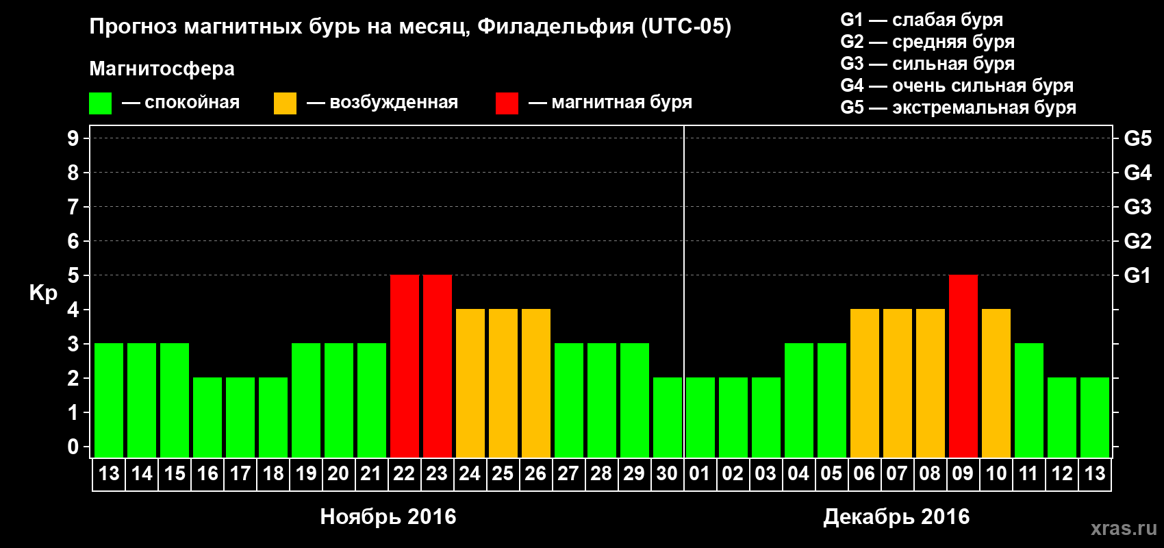 Прогноз магнитных бурь в Филадельфии — 13 ноября 2016 года