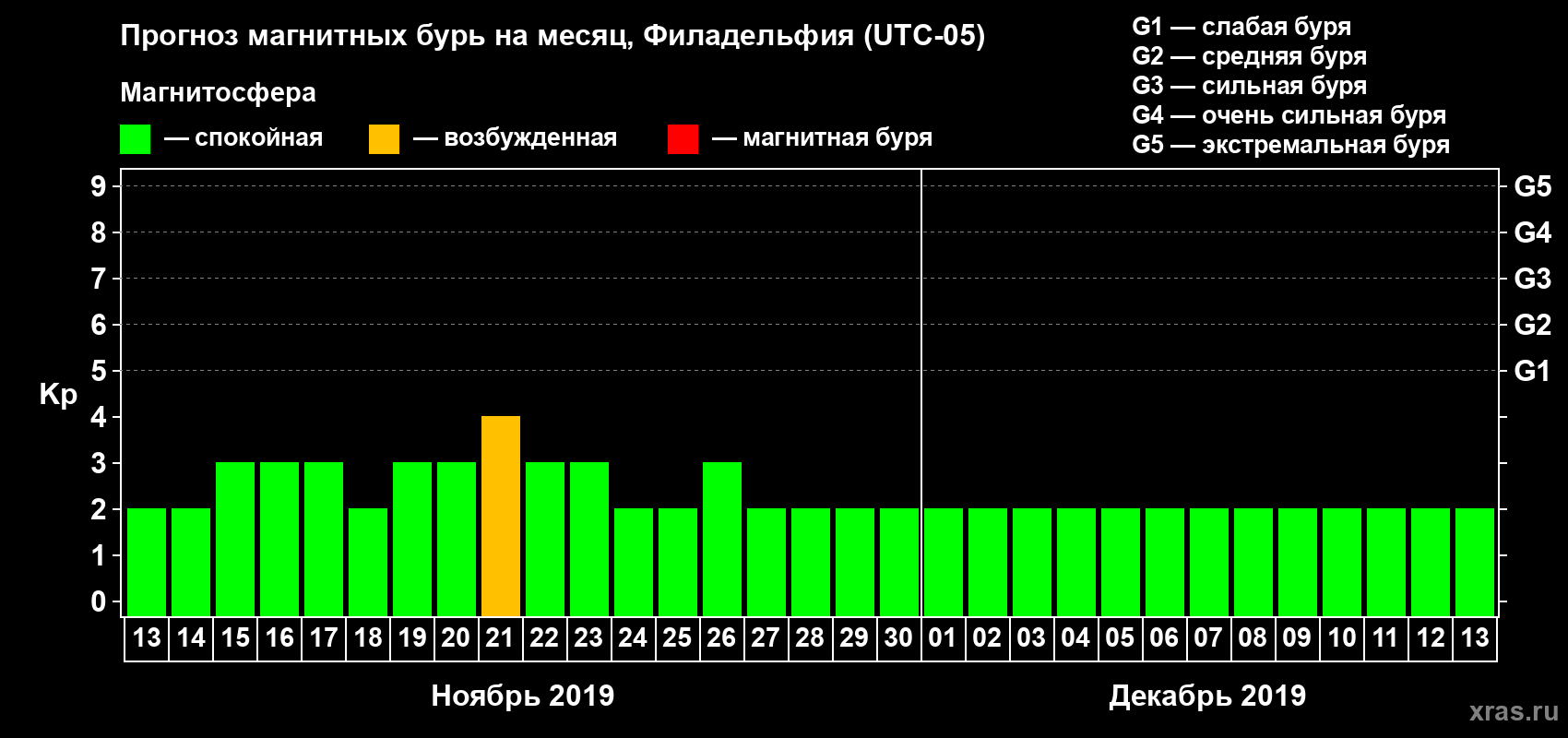 Прогноз магнитных бурь в Филадельфии — 13 ноября 2019 года
