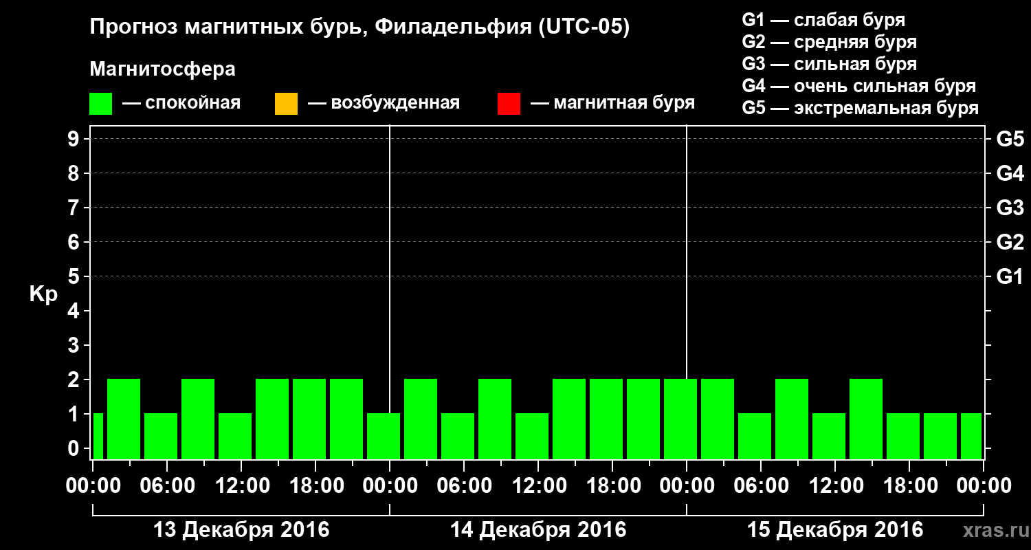 Прогноз магнитных бурь в Филадельфии — 13 декабря 2016 года